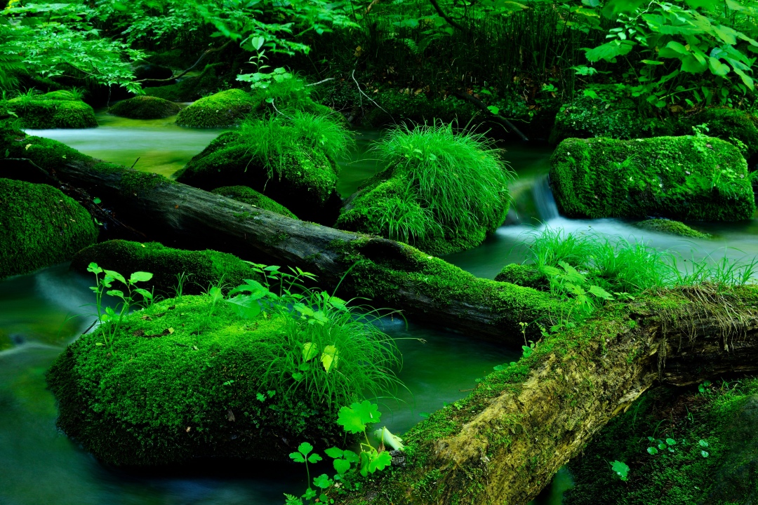 自然、溪流、石头、木材、苔藓、水、绿色、清新、治愈