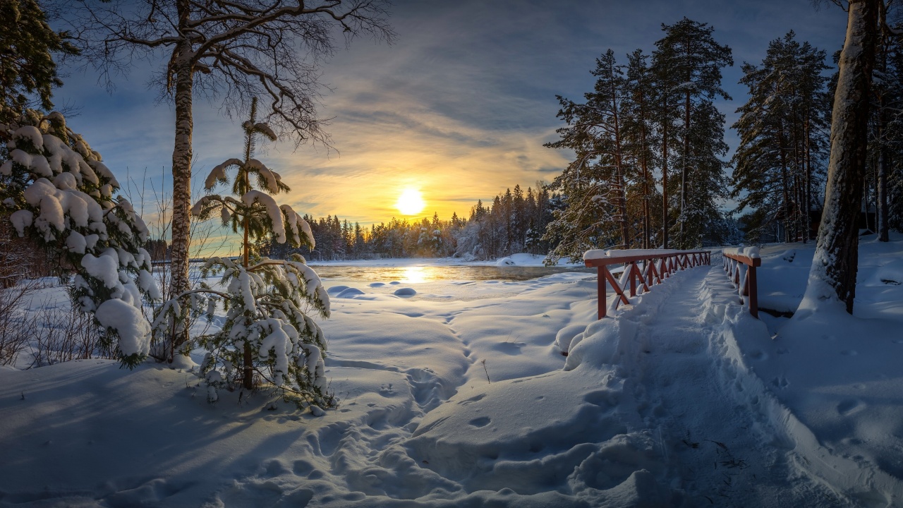 自然、风景、冬天、雪、树、太阳、天空、云