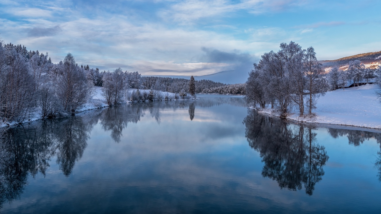 自然、风景、房屋、村庄、山脉、雪、冬天、云、天空、水、码头