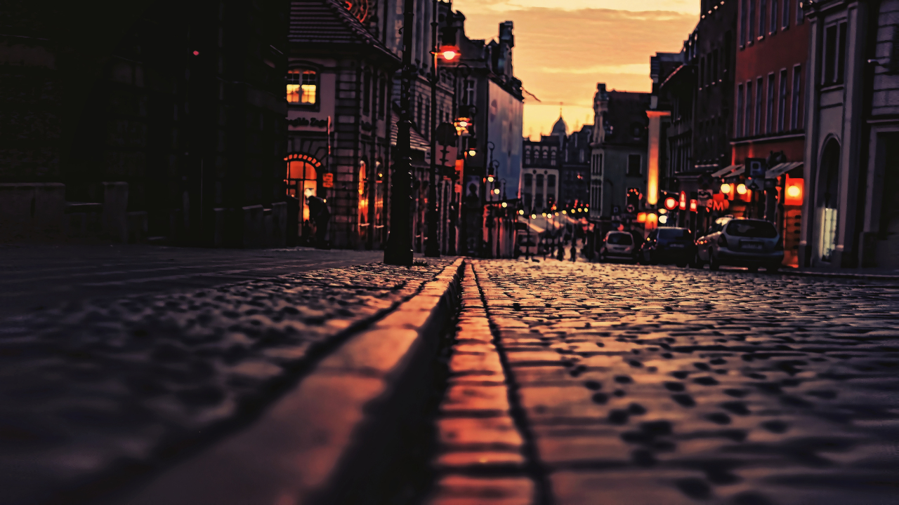 黄昏时分的城市街道