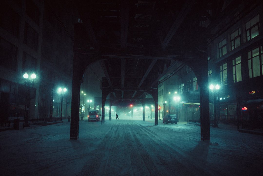 城市、建筑、黑暗、夜晚、胶片、颗粒、寒冷、雪、汽波