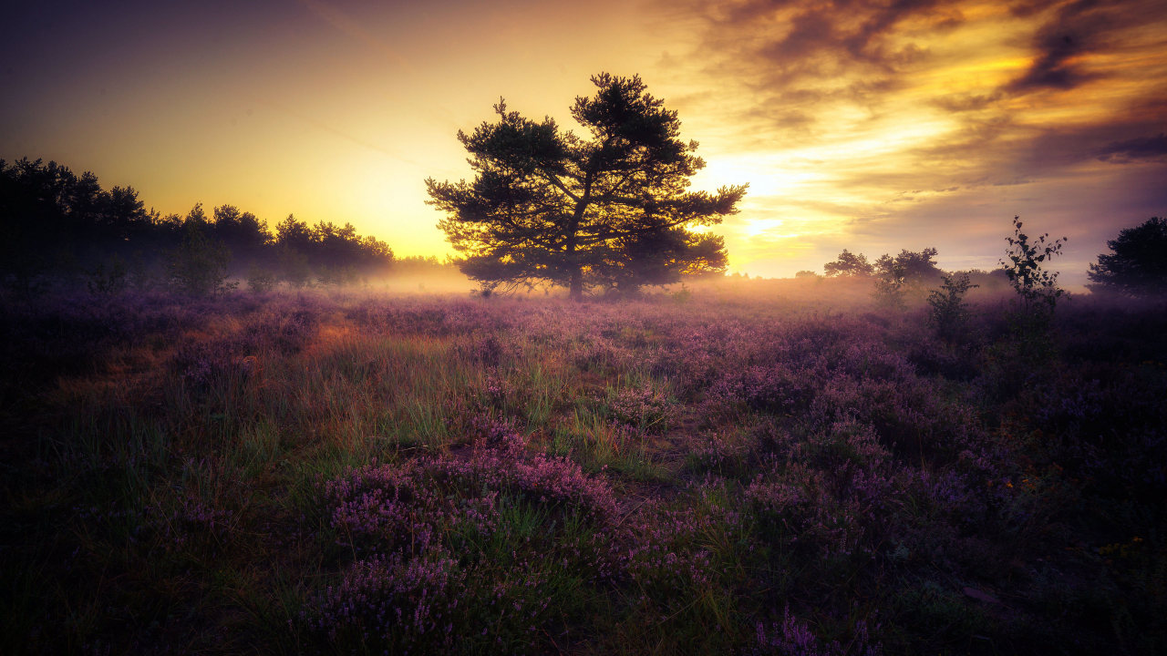 夕阳下的紫色田野