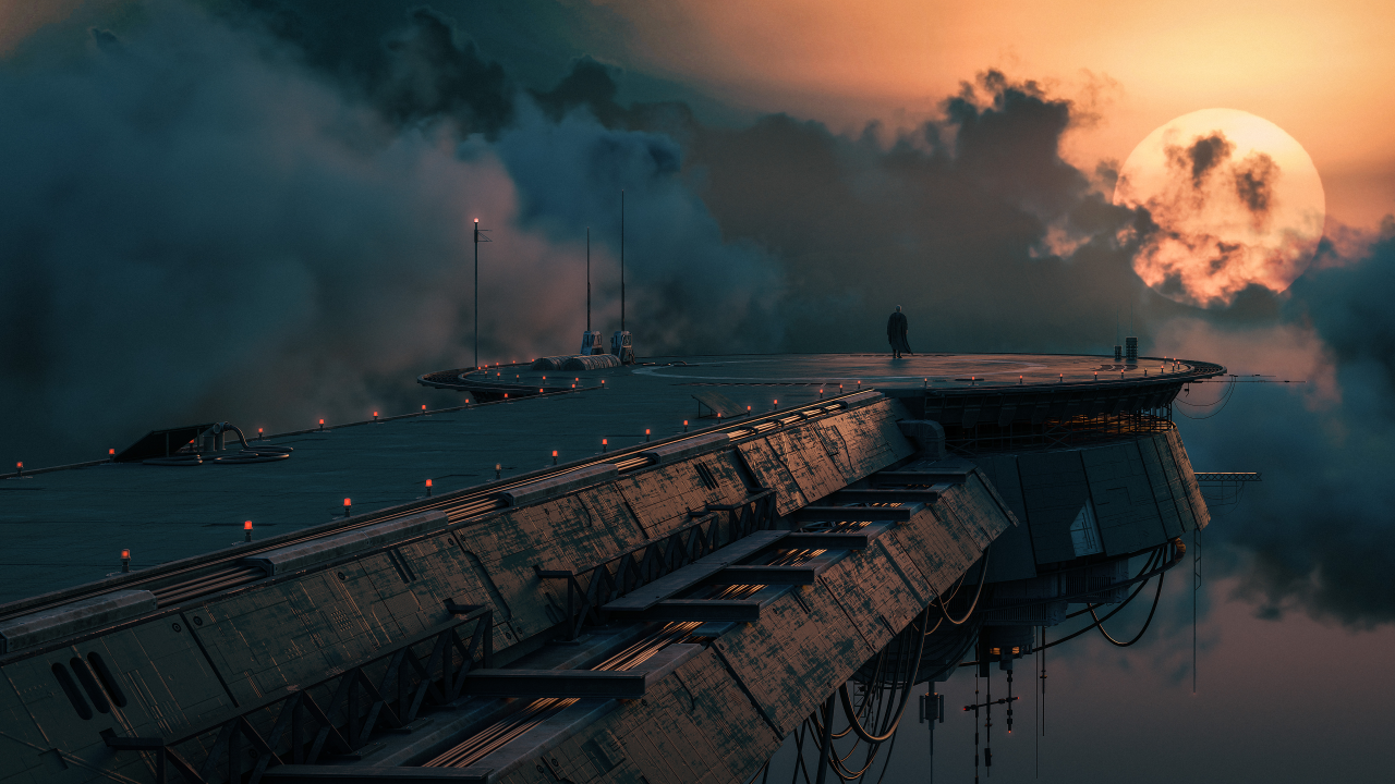 飞艇、帆船、车辆、战斗、风景、天空、云、船、游戏、科幻