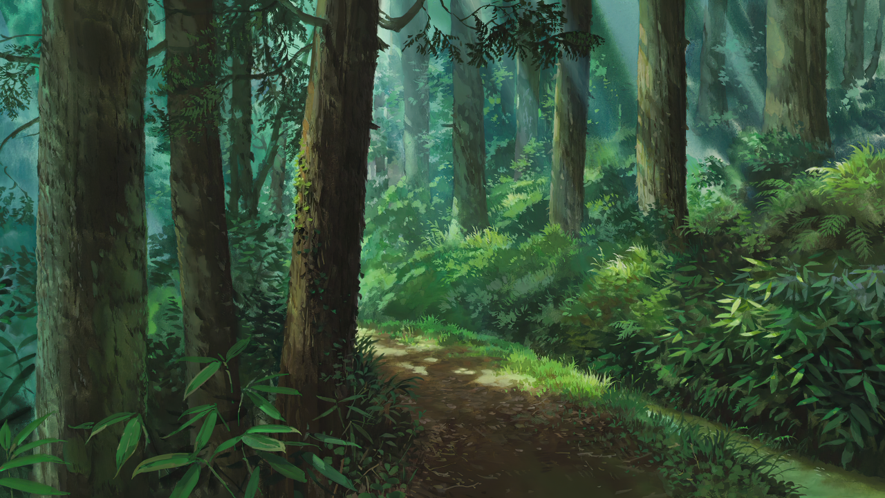 森林、绿色背景、树木、路径