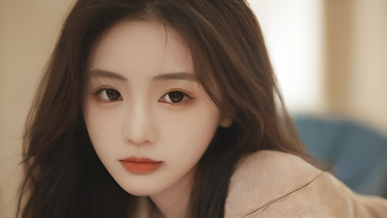 棕色头发女孩的温柔凝视