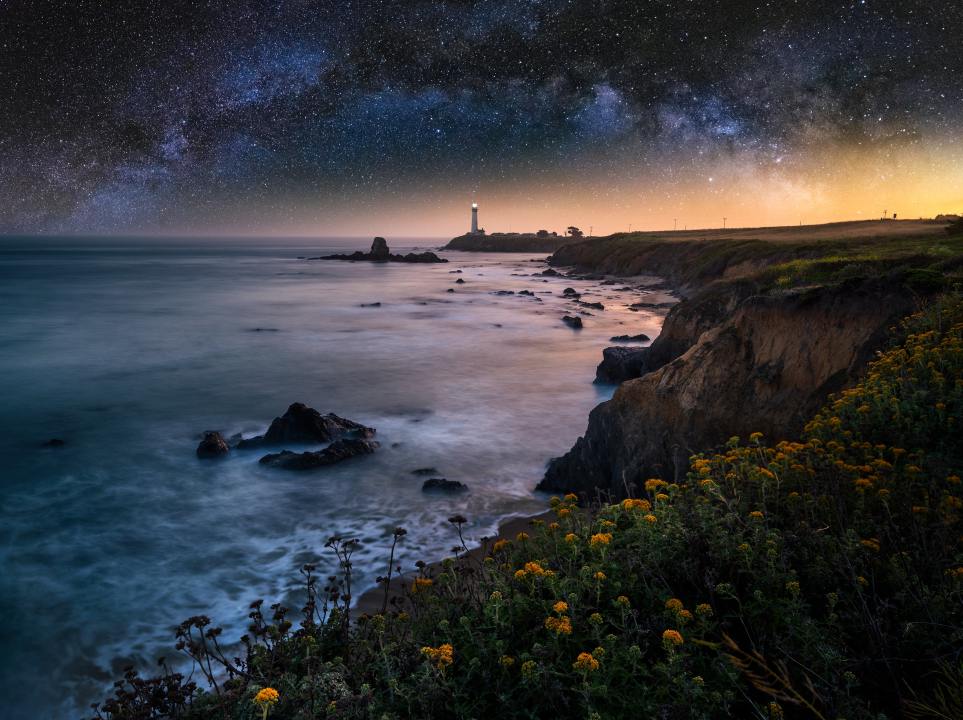 风景、夜景、摄影、灯塔、梦境、自然、大海、悬崖、日落
