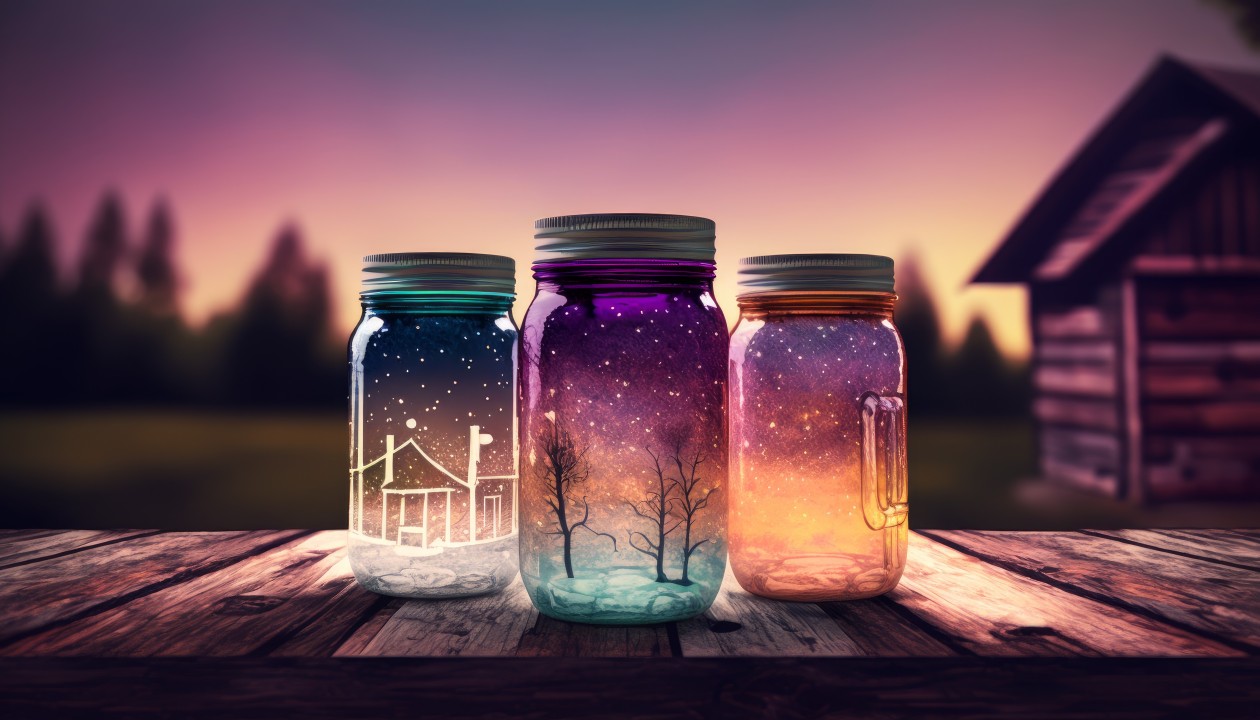 黄昏下的梦幻玻璃瓶