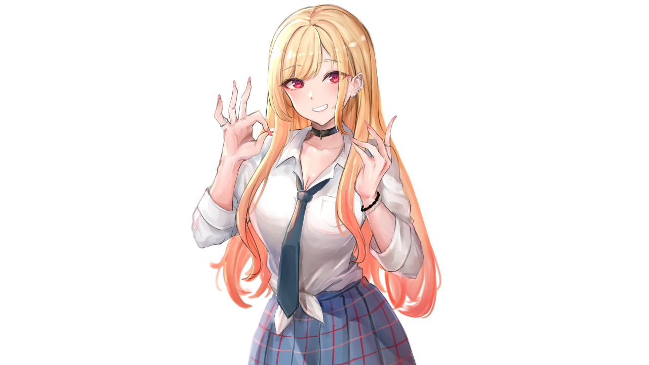 红眼睛、金发、玩偶、动漫女孩、白色背景、简单背景