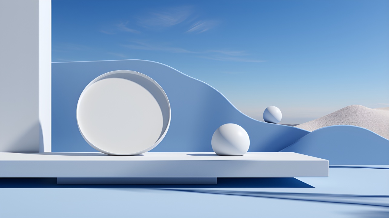 极简主义梦境:宁静的蓝白色几何世界