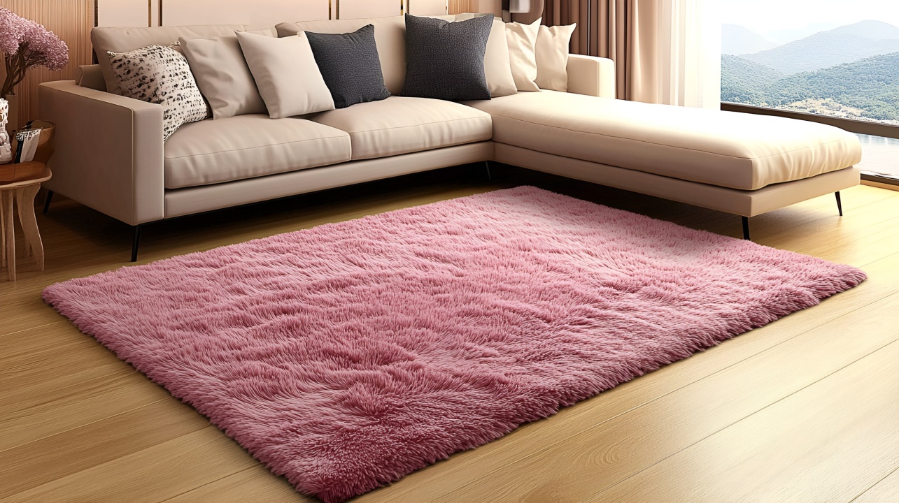 温馨家居梦:米色沙发与粉红地毯的浪漫邂逅