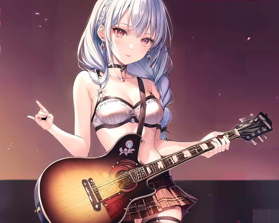 人物、辫子、吉他、动漫、动漫女孩、AI艺术、艺术、乐器、耳环