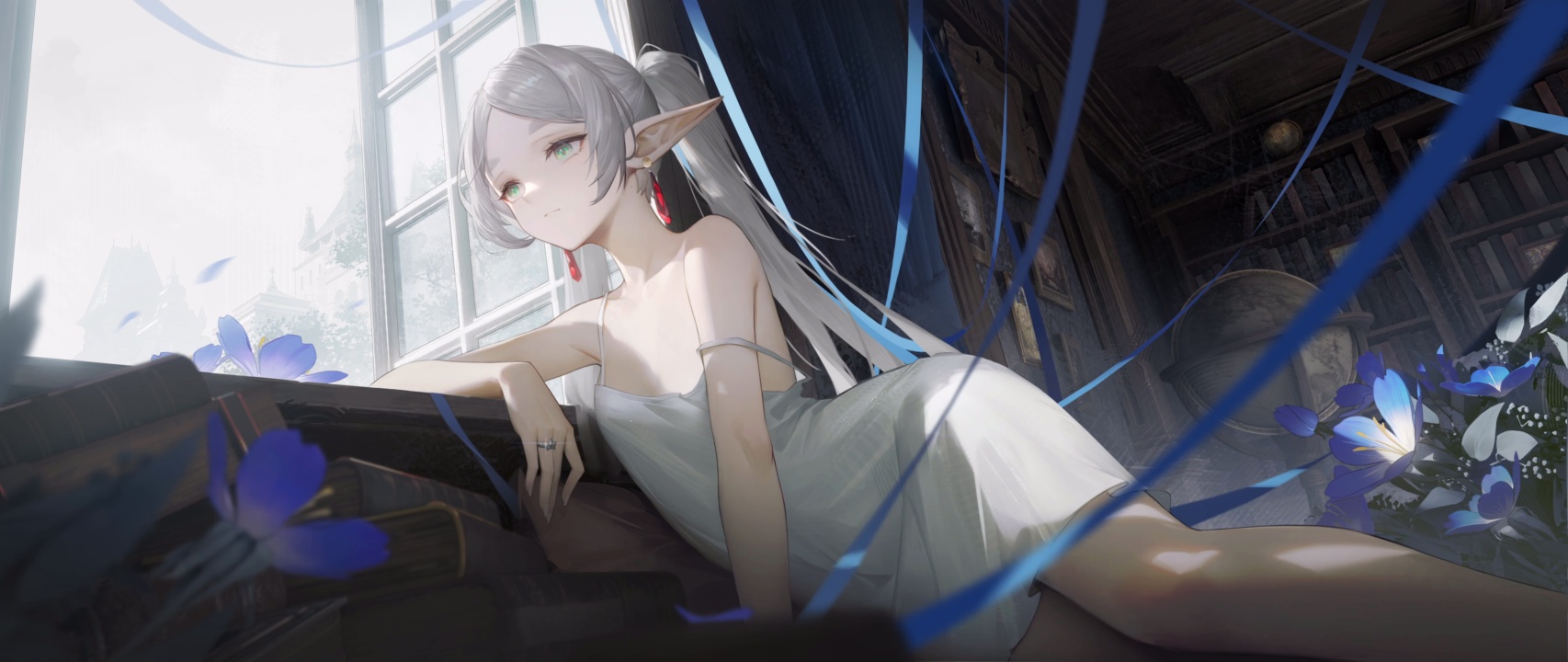 弯腰、多色头发、芭蕾舞演员、短发、手臂举起、芭蕾舞短裙、双色调头发、透明连衣裙