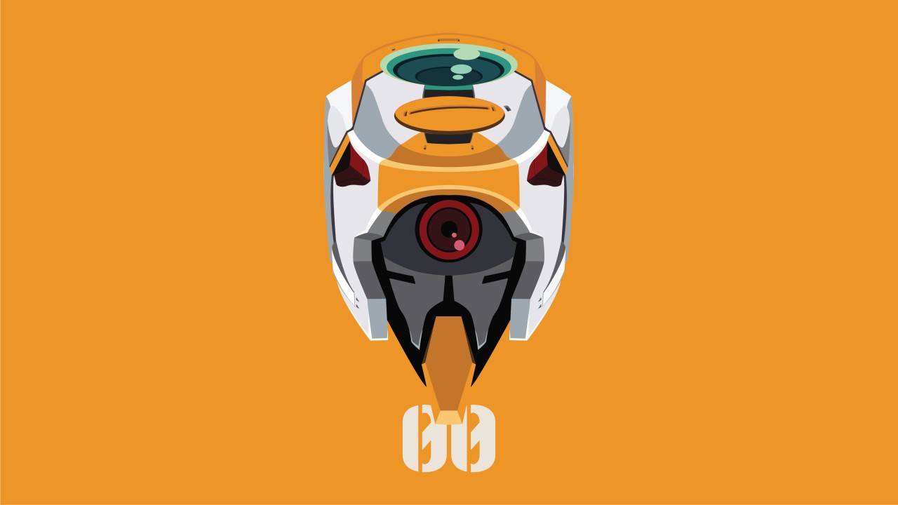 霓虹创世纪福音、机甲、单元、动漫、橙色背景、简单背景
