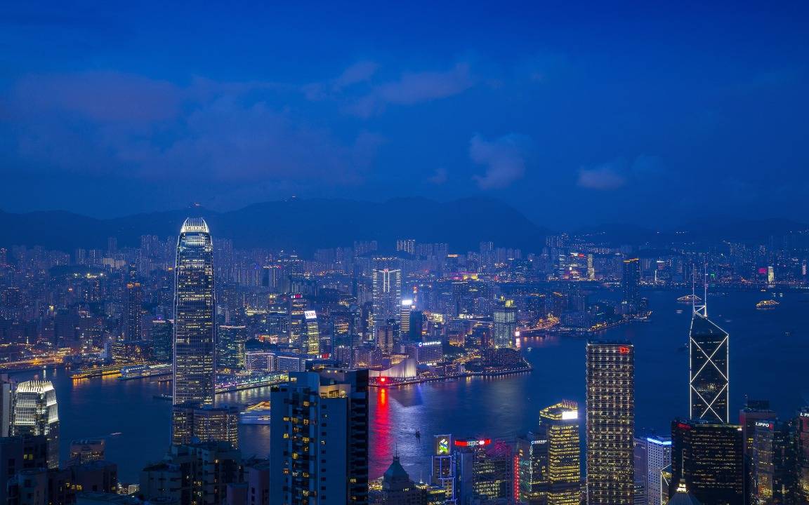 城市、灯光、香港、城市景观、建筑、夜景、蓝色、霓虹灯