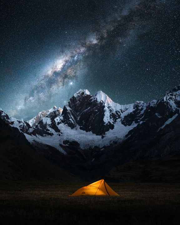 星空下的雪山与帐篷
