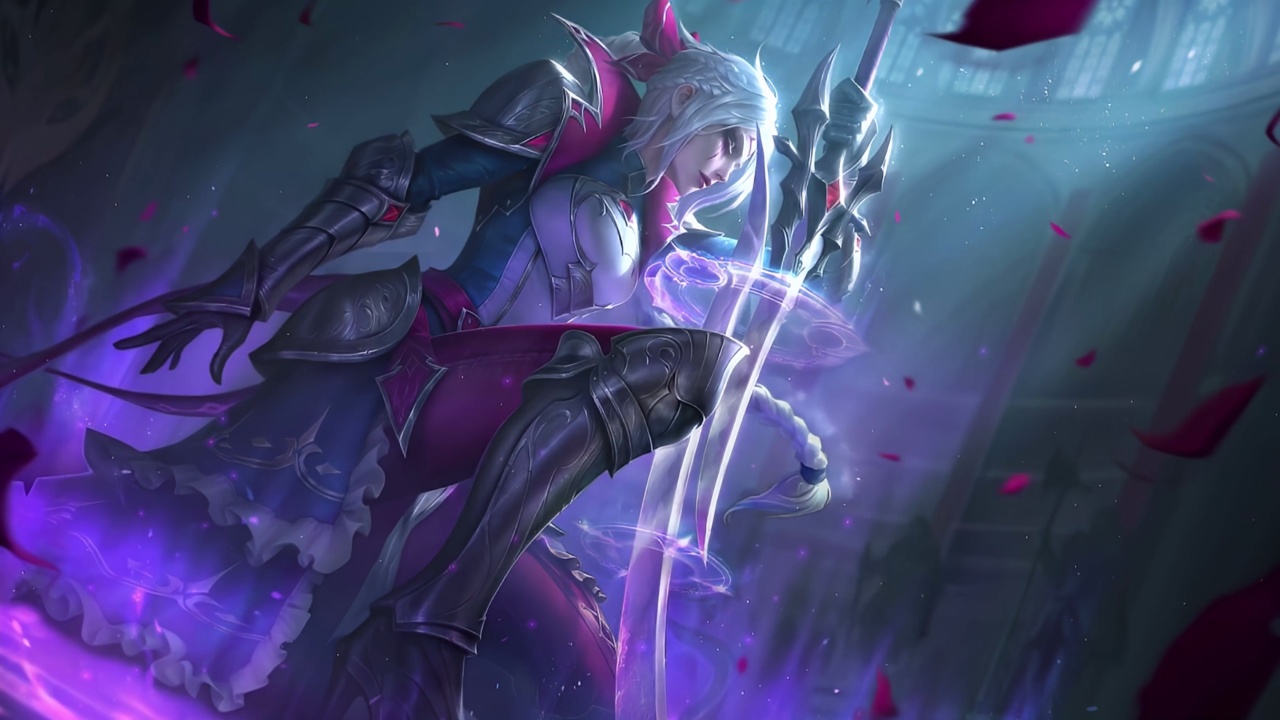 女人、马尾辫、蓝眼睛、英雄联盟、半机械人、肖像、发光眼睛、花瓣、粉色、蓝色