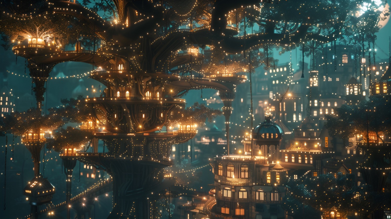 梦幻森林之城:灯光与建筑的魔法之夜”