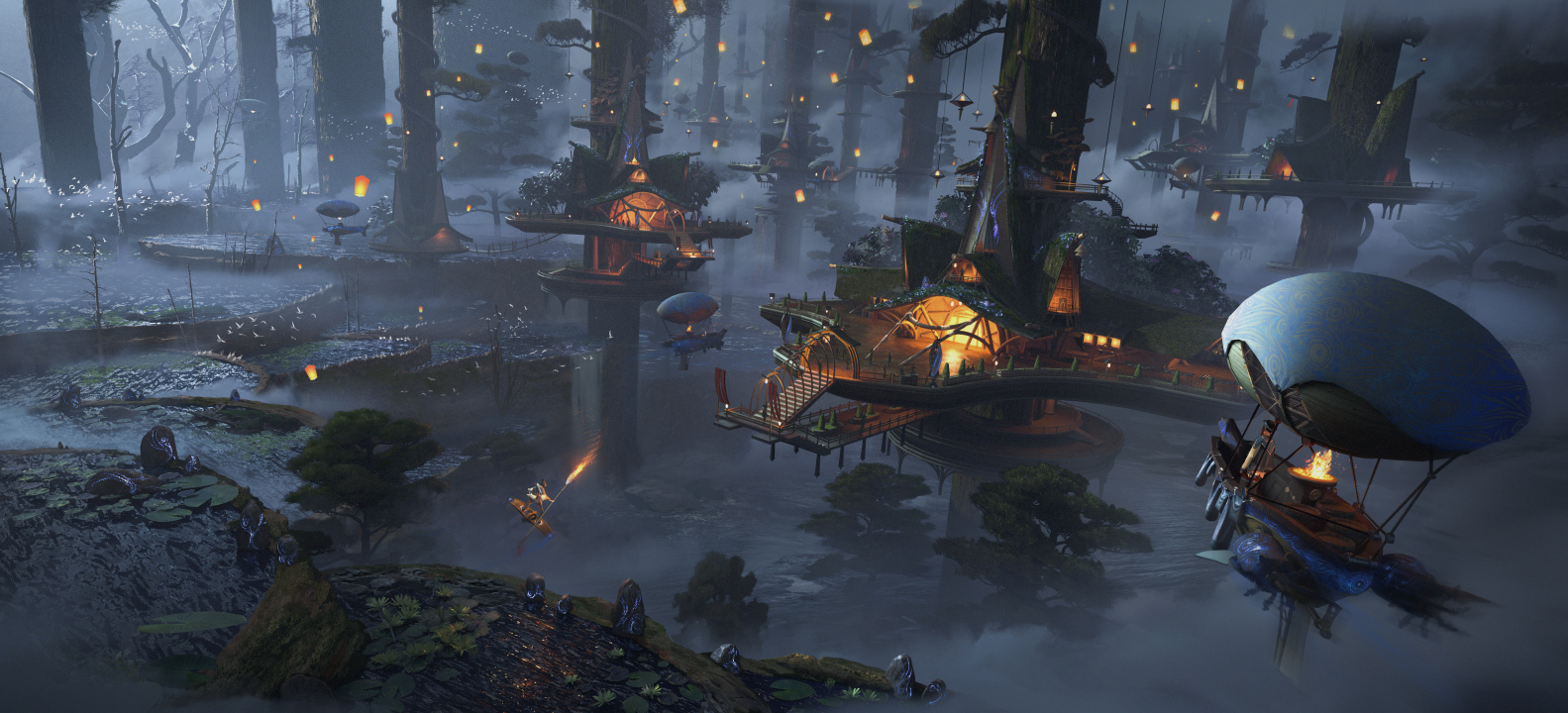 景观、概念艺术、奇幻建筑、奇幻艺术、村庄、森林、树木