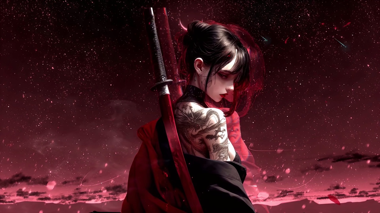 女孩 纹身 武士刀