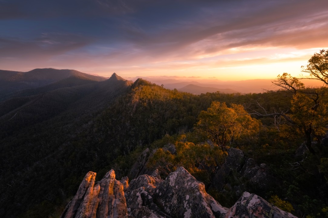 日落下的山景