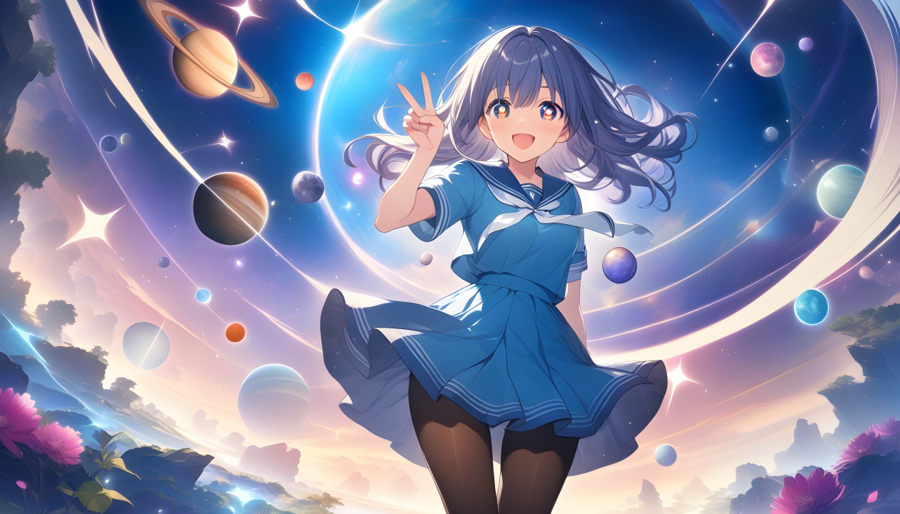梦幻星空中的动漫女孩