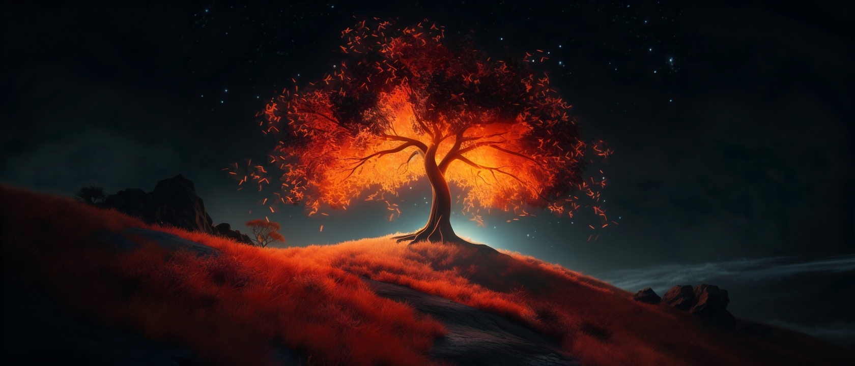 艺术、风景、夜晚、树木、自然