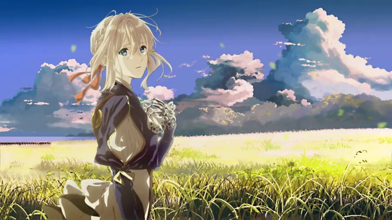 闭眼、短发、动漫、女孩、连衣裙、蓝色背景、简单背景、极简主义