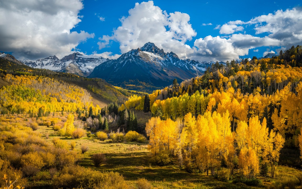 自然、风景、秋天、森林、山脉、天空、云、树、雪