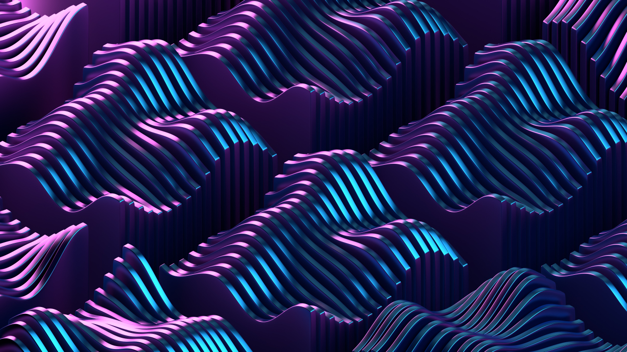 抽象、多彩、霓虹灯、现代、模式、蓝色、紫色、波浪、线条、几何、AI艺术