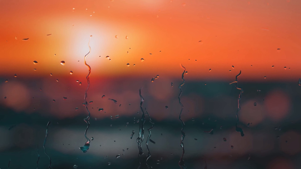 雨中朦胧的日落