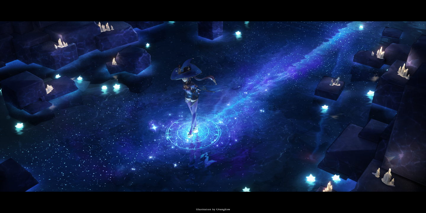 女巫、原神、图片、动漫女孩、女巫服装、水、倒影、星夜