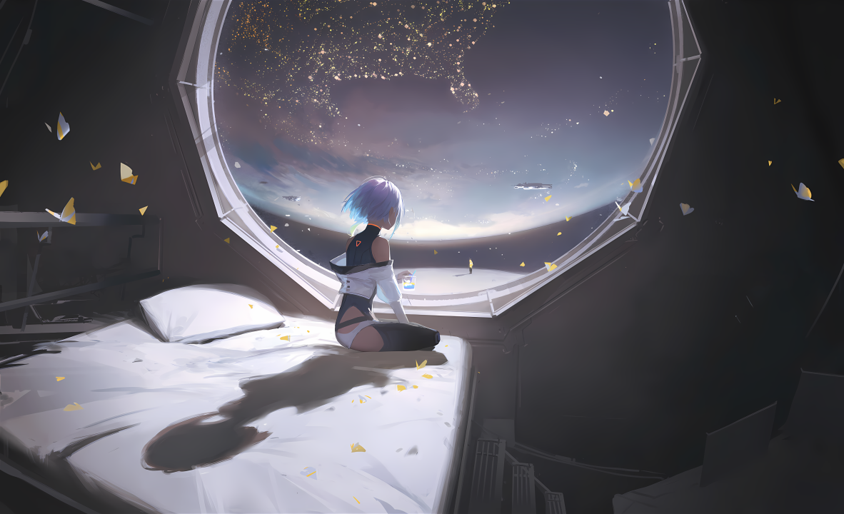 涂鸦、床、赛博朋克、动漫、星球、窗口