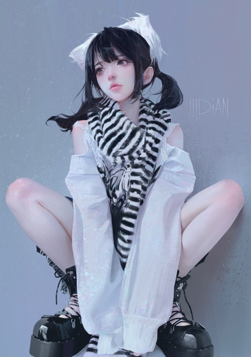 腿部、围巾、带水印