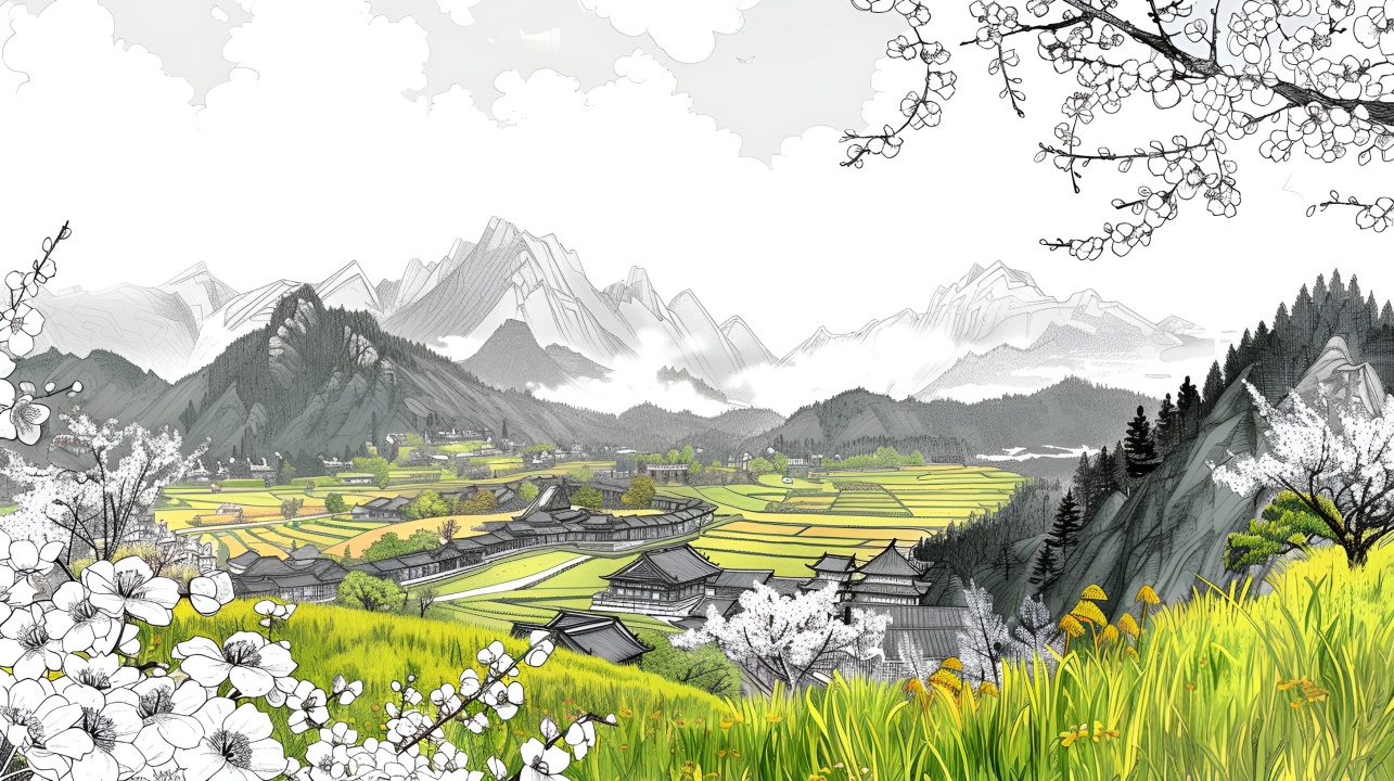 水墨丹青:山野之间的宁静村落