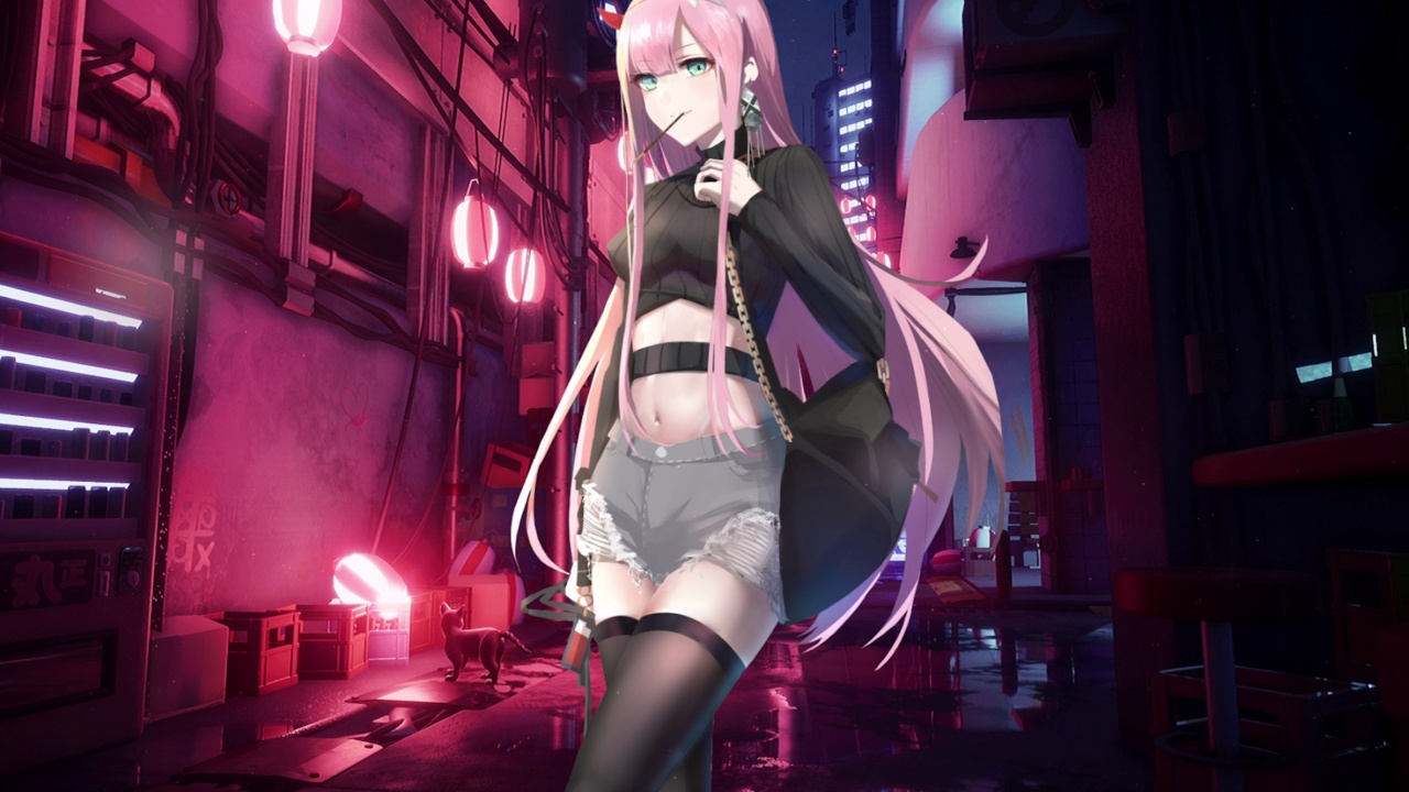 粉色、合成波、氖、酷、动漫女孩、二次元