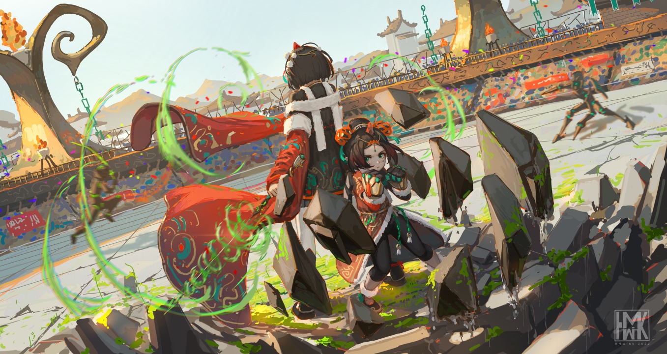 人物、拳头、插画、动漫女孩、竞技场、剑、战斗