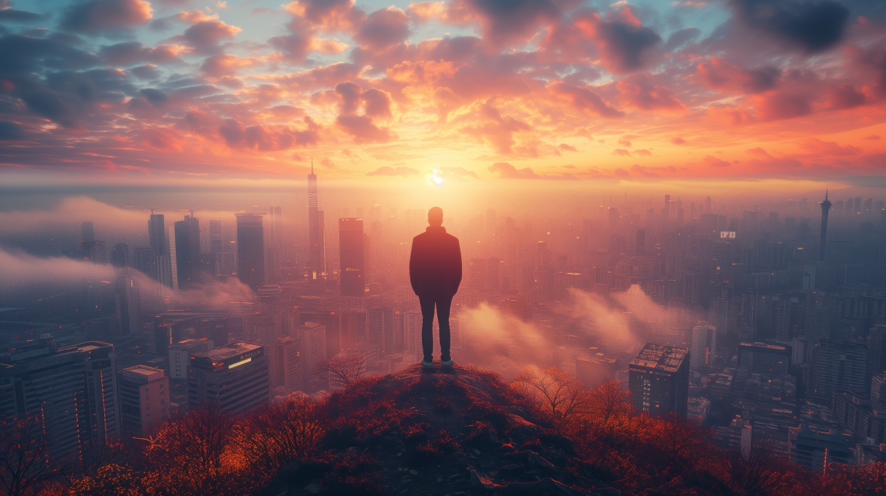 未来都市中的孤独身影