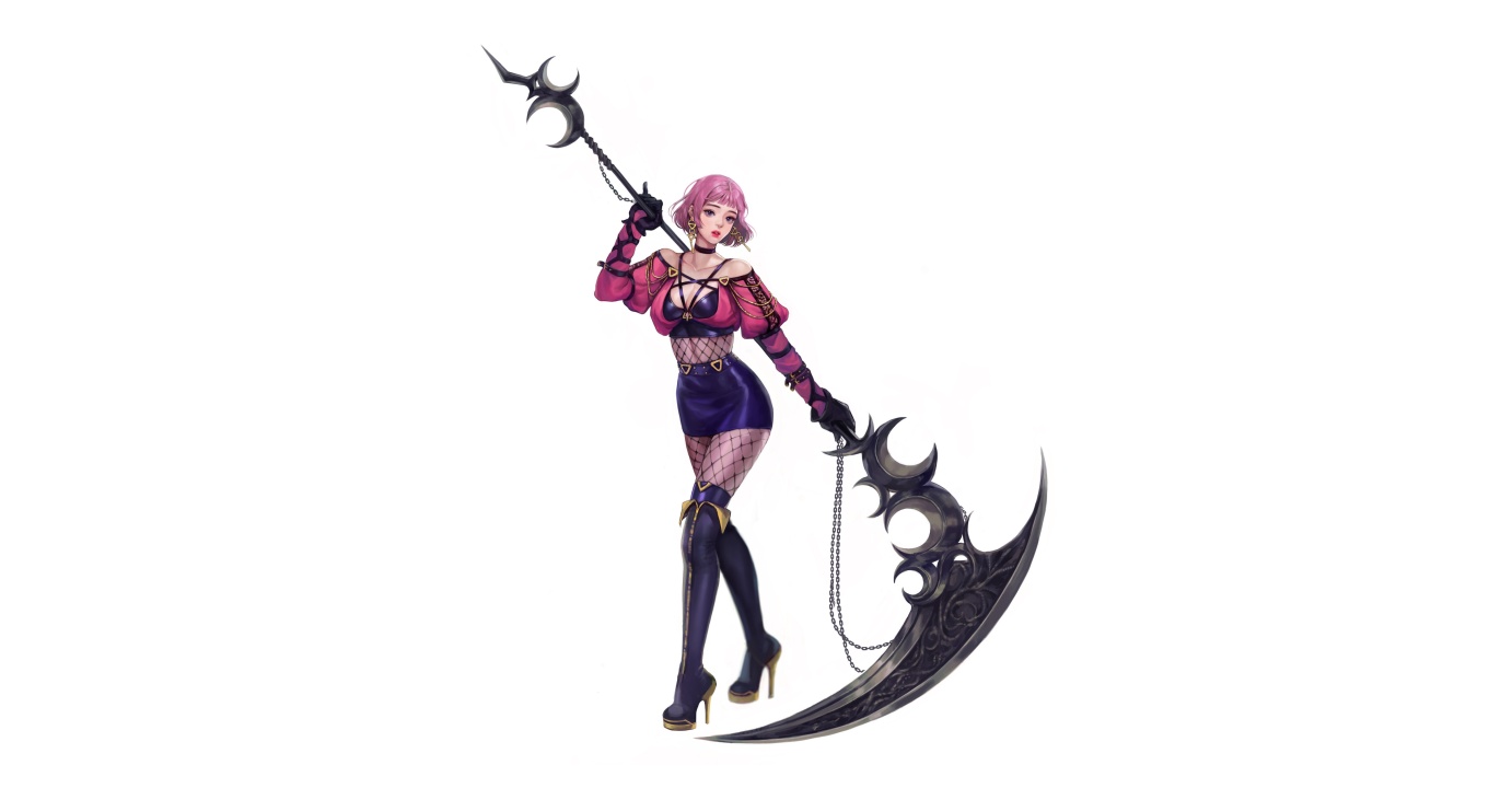 奇幻女孩、武器、简单背景、白色、奇幻艺术、动漫、女孩、简约