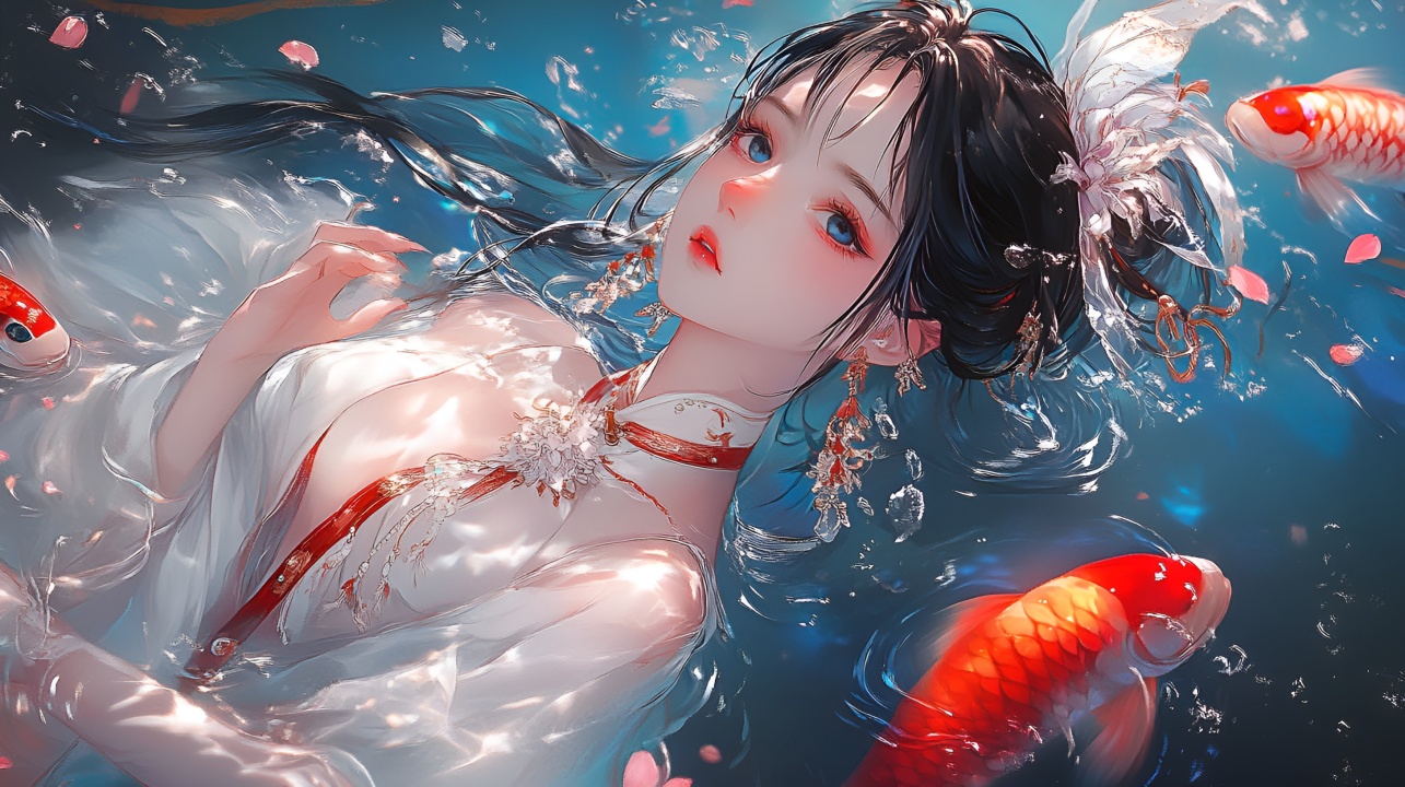可爱的、粉色、唯美、鱼塘、动漫女孩、二次元
