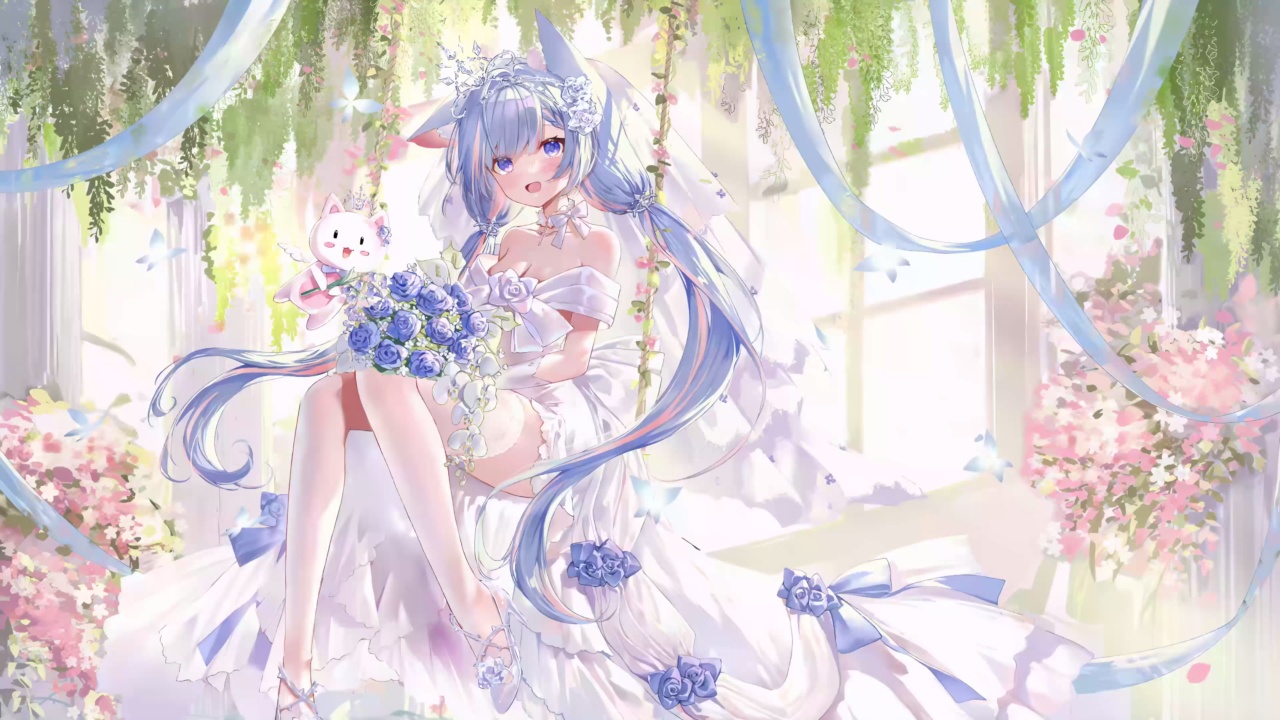 可爱的、粉色、蓝色、动漫女孩、二次元