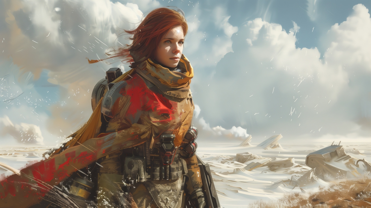 妇女、红发、人工智能艺术、后启示录、插图、云