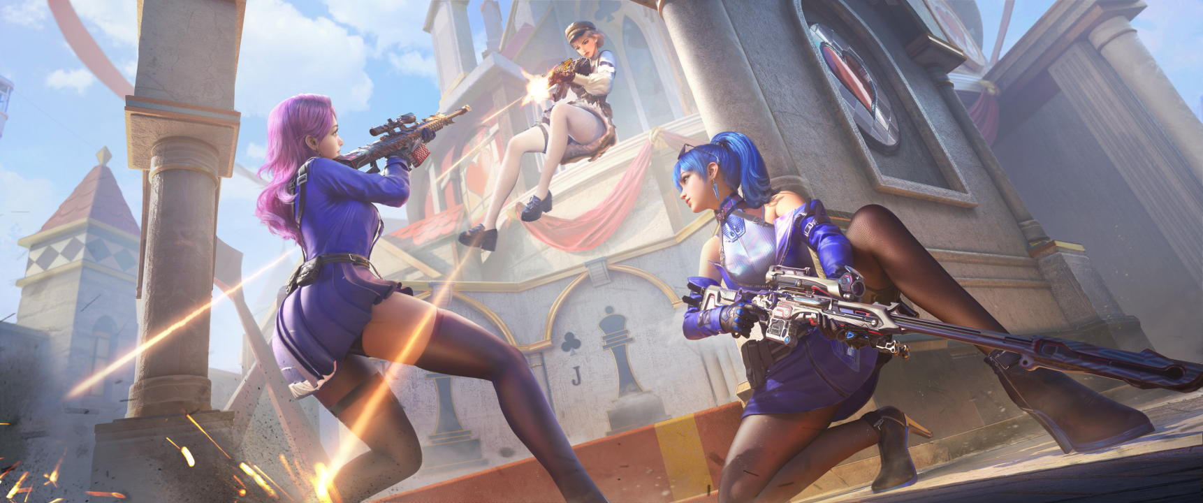 蓝头发、紫色头发、电子游戏、角色、火力、女孩、武器、战斗、黑色丝袜、白色丝袜、裙子、太阳镜