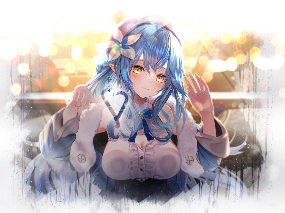 蓝色头发、黄色眼睛、兽耳、动漫、女孩