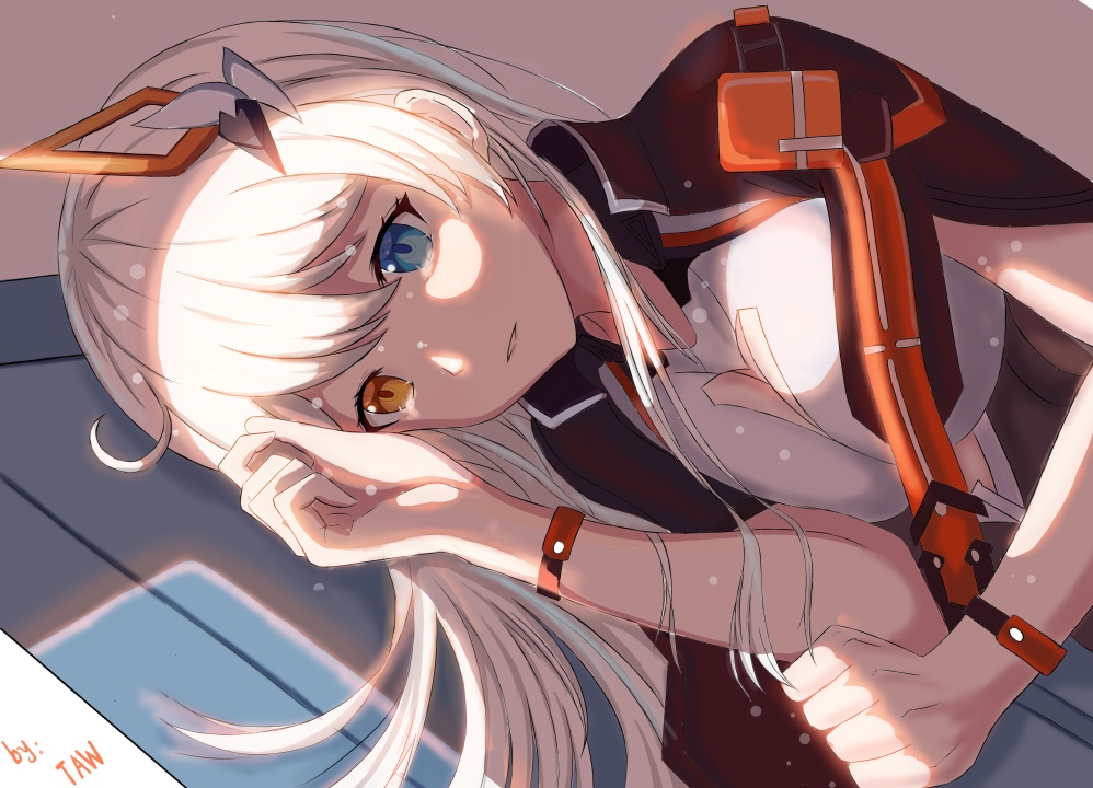 白发、土豆、动漫、女孩、AI艺术、肖像、本海、异瞳
