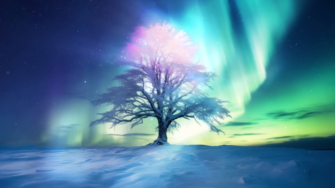 北极光下的树
