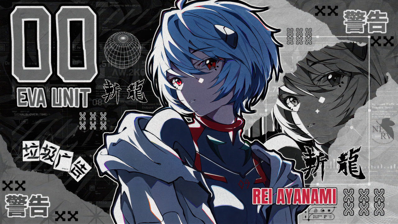 绫波丽,单色背景