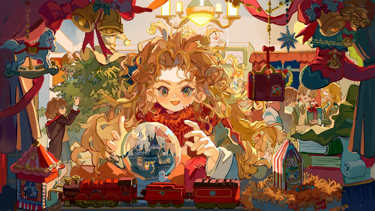 凌乱的头发、哈利波特、圣诞树、玩具、圣诞礼物、铃铛、雪花球、圣诞节、校服、红领巾