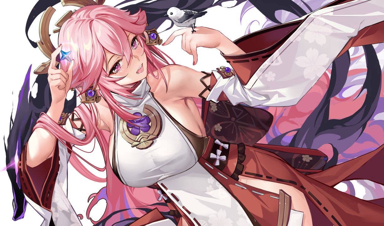 原神、粉色头发、动漫、动漫女孩、白色背景