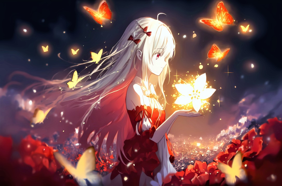 动漫女孩,5K,蝴蝶,超现实