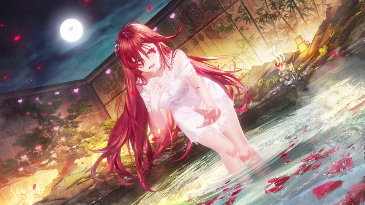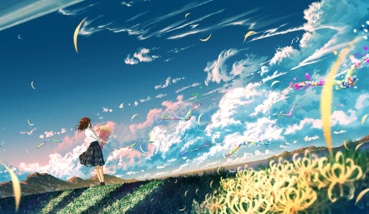 长发、动漫、动漫女孩、手套、连衣裙、鲜花、水色眼睛